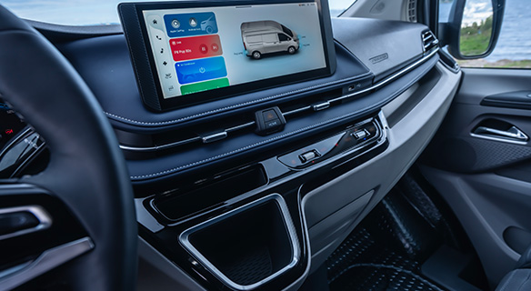 Der MAXUS eDeliver 7 überzeugt im Interieur mit einem durchdachten Konzept, das Funktionalität und Komfort nahtlos verbindet. Das moderne Cockpit mit 12,3-Zoll Touchscreen, digitalem Kombiinstrument und intuitiver Bedienung sorgt für ein Fahrerlebnis auf Pkw-Niveau. Clevere Ablageflächen und durchdachte Stauraumlösungen bieten Platz für alles, was unterwegs gebraucht wird. Dank moderner Konnektivität, Smartphone-Integration und zahlreicher Assistenzsysteme ist jede Fahrt effizient, komfortabel und sicher.